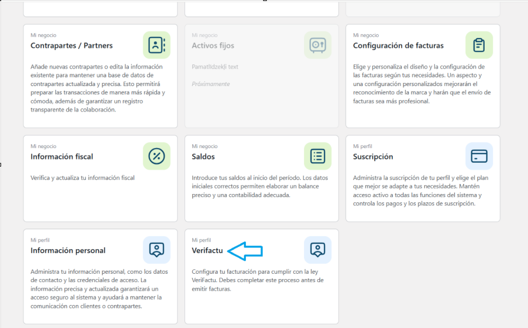 First, you must register in the VeriFactu system. To do this, in your profile you must access the Verifactu section and there: