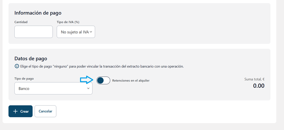 Este paso es fundamental para que la aplicación identifique correctamente la operación como un alquiler sujeto a retención.